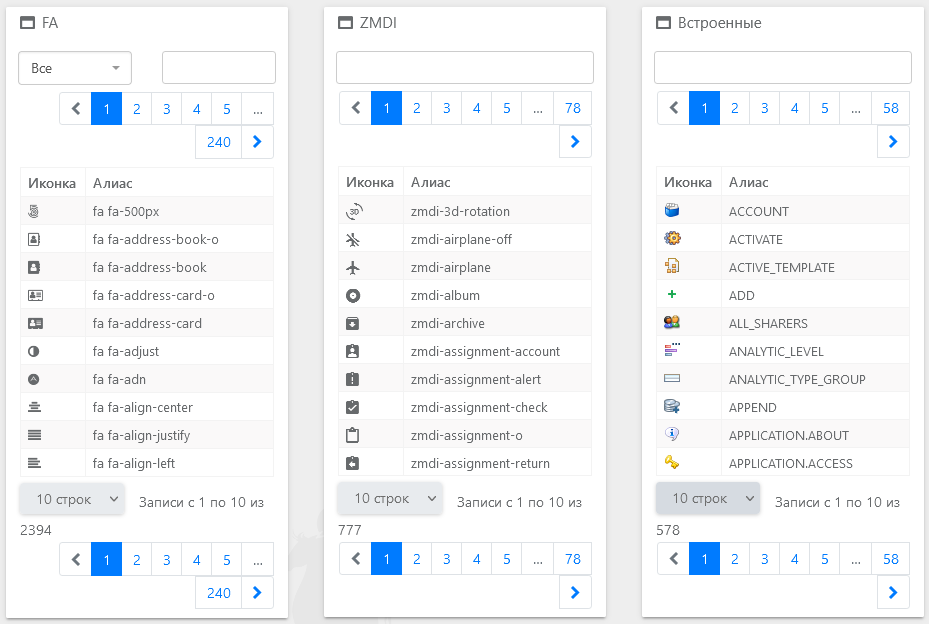 Раздел Иконки предназначен для присвоения графических пиктограмм создаваемым объектам с целью упрощения визуального восприятия интерфейса и улучшения взаимодействия оператора с системой.
